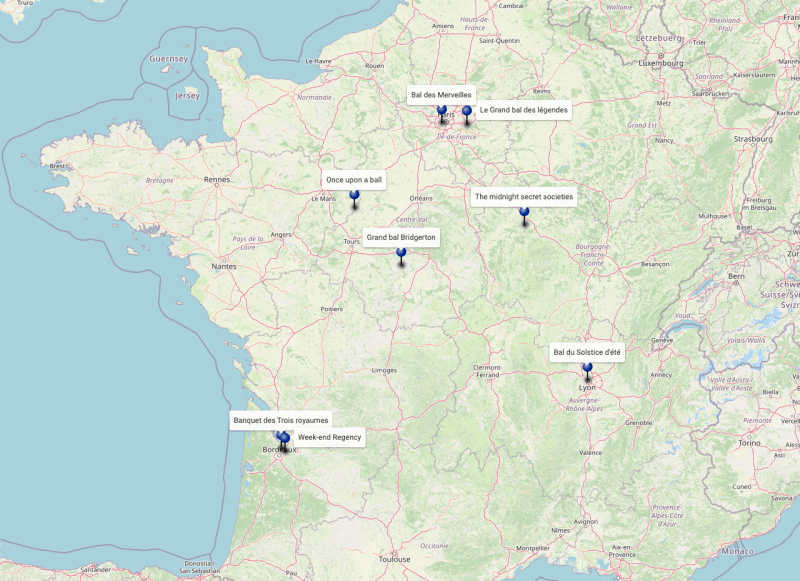 J'exclus de cette listes tous les évènements de reconstitution historique (c'est très spécifique) et les conventions/festivals puisque les costumes y sont optionnels. Je me suis restreinte à la France métropolitaine mais il y a également des bals en Belgique.