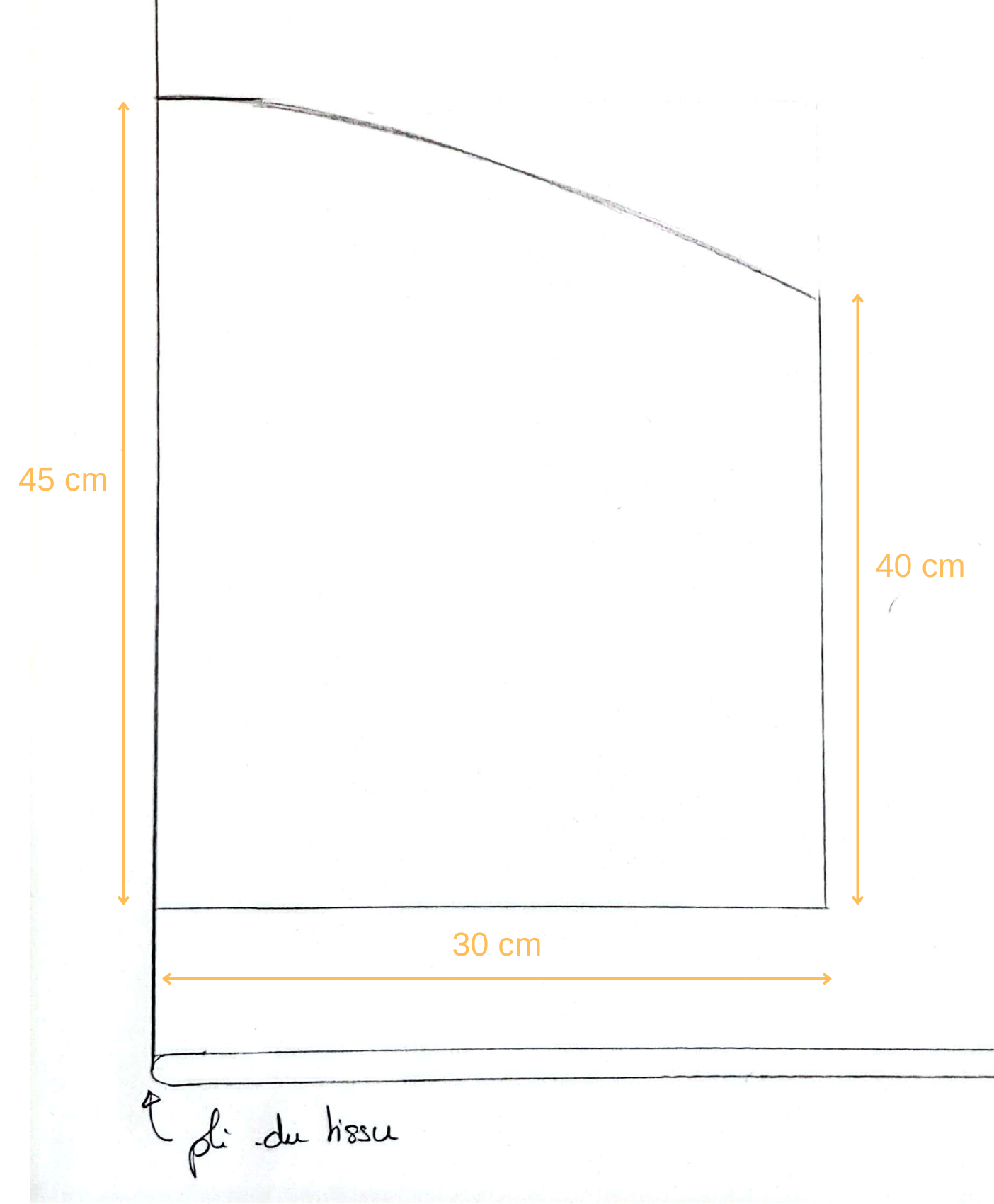 Mon rectangle tracé à partir du pli du tissu, je coupe ma pièce et refait cette étape pour mon deuxième panier.