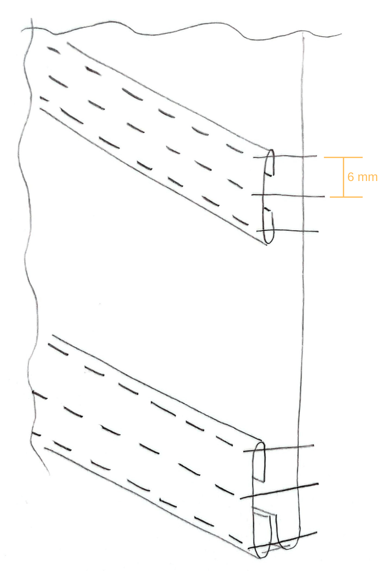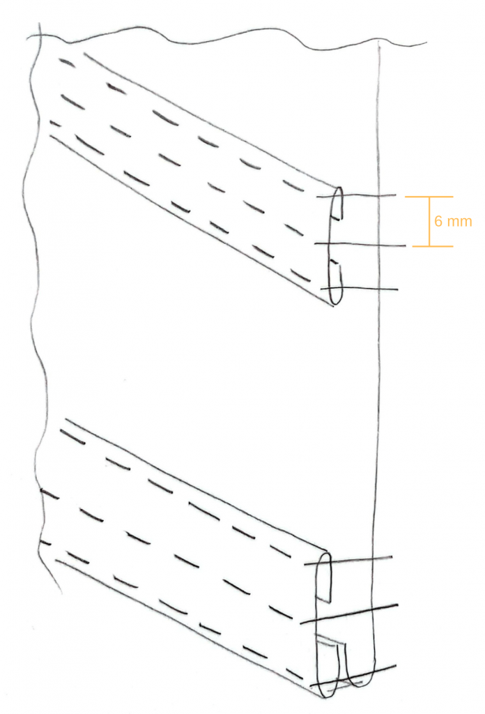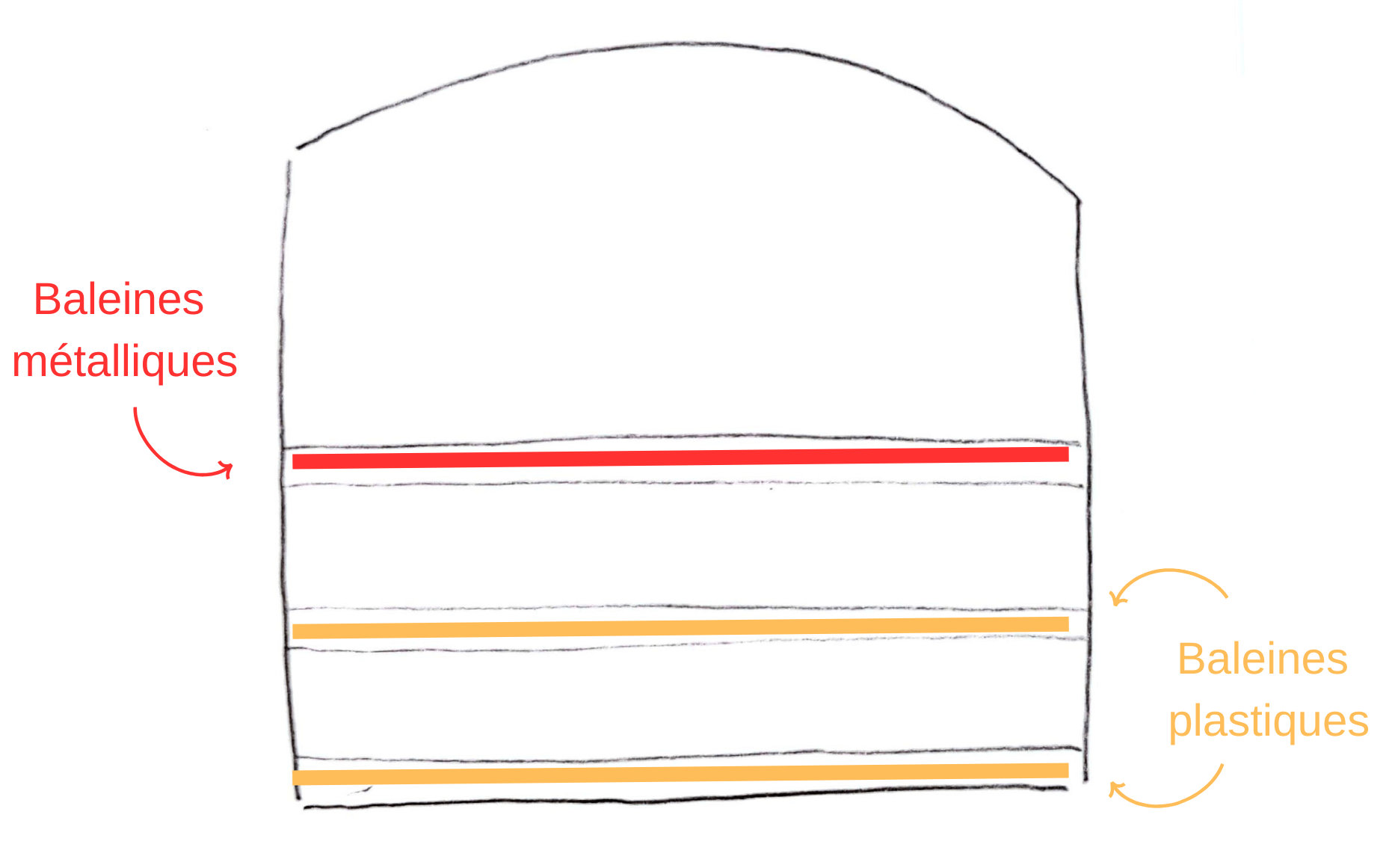 Théoriquement, il faudrait utiliser de la baleine plate métallique d’ 1 cm de large. N’ayant que des baleines de 5 mm à notre disposition, on a dû faire autrement :