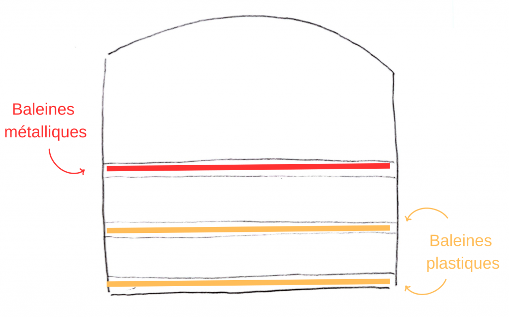 Conseil : On oublie surtout pas d’arrondir les extrémités des baleines, ou bien d’ajouter un embout métallique avant de les insérer. Cela facilite le passage dans le tunnel et évite de fragiliser le tissu .