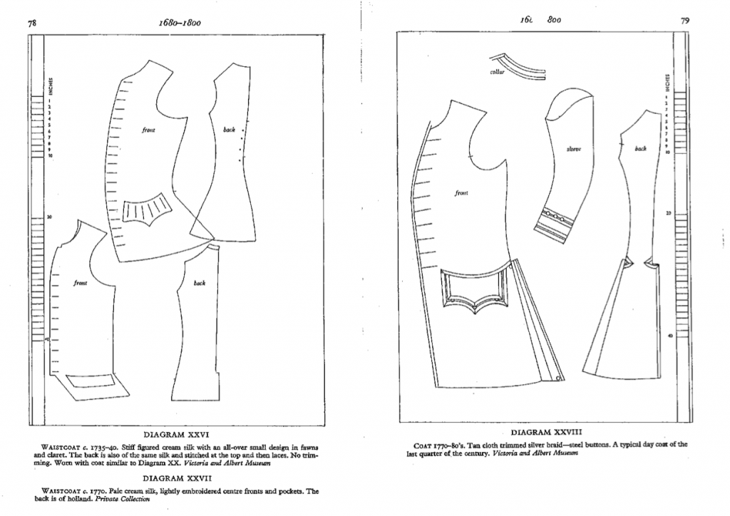 Comme pour le gilet, c'est difficile de trouver un bon patron du début du XVIIIe donc j'ai un peu triché et mes culottes sont plutôt inspirées des années 1790. Je vous conseille ceux de Black Snail Pattern et Laughing Moon (encore plus tardif mais avec une version pantalon). Pour celui de BSP, je trouve qu'il est un peu long et que les poches sur le côté ne sont pas très utiles (elles se positionnent vers l'arrière ce qui est plutôt déroutant et pas du tout instinctif pour les utiliser). Vous avez également des patrons dans The Cut of Men Clothes et Temps d'Elegance en propose un sur son blog.