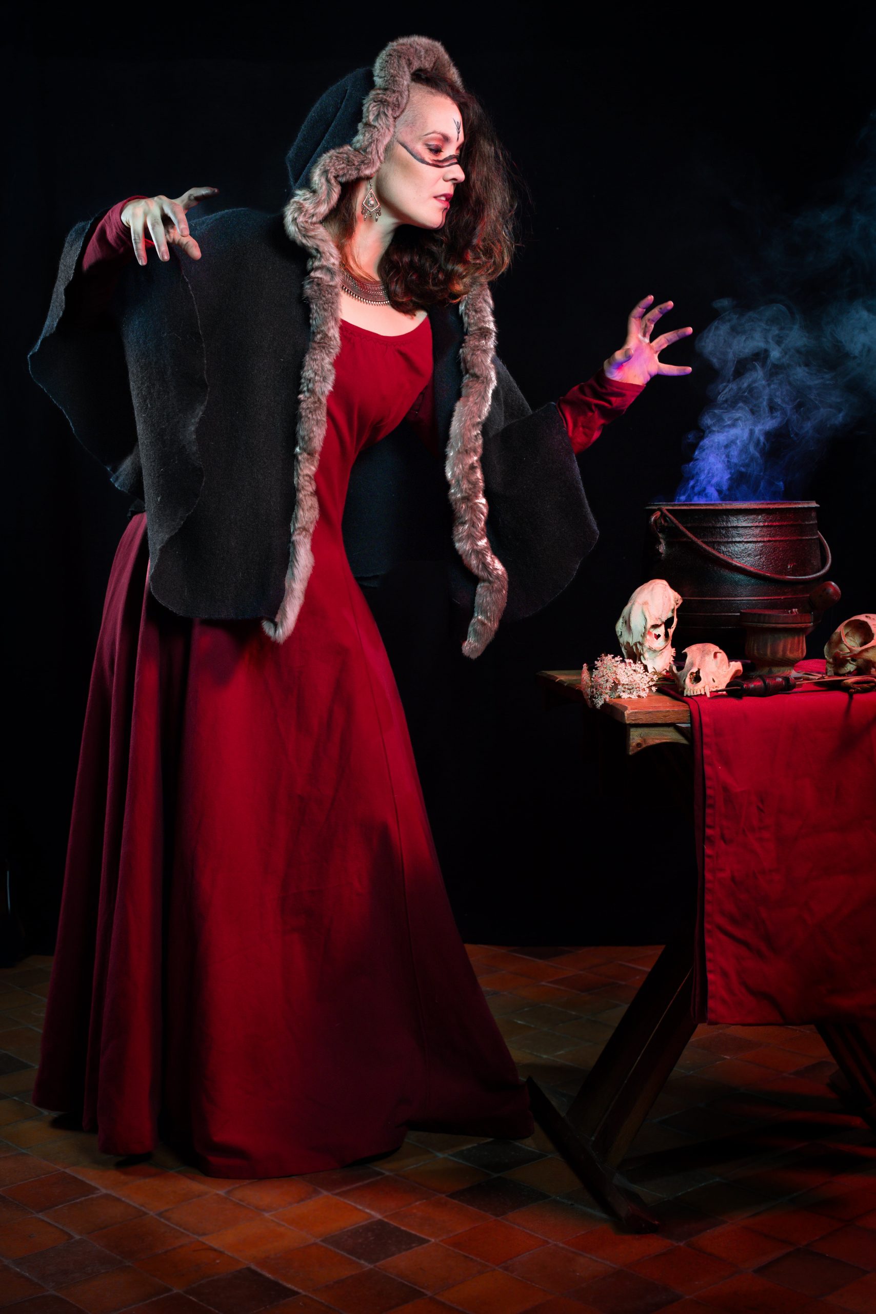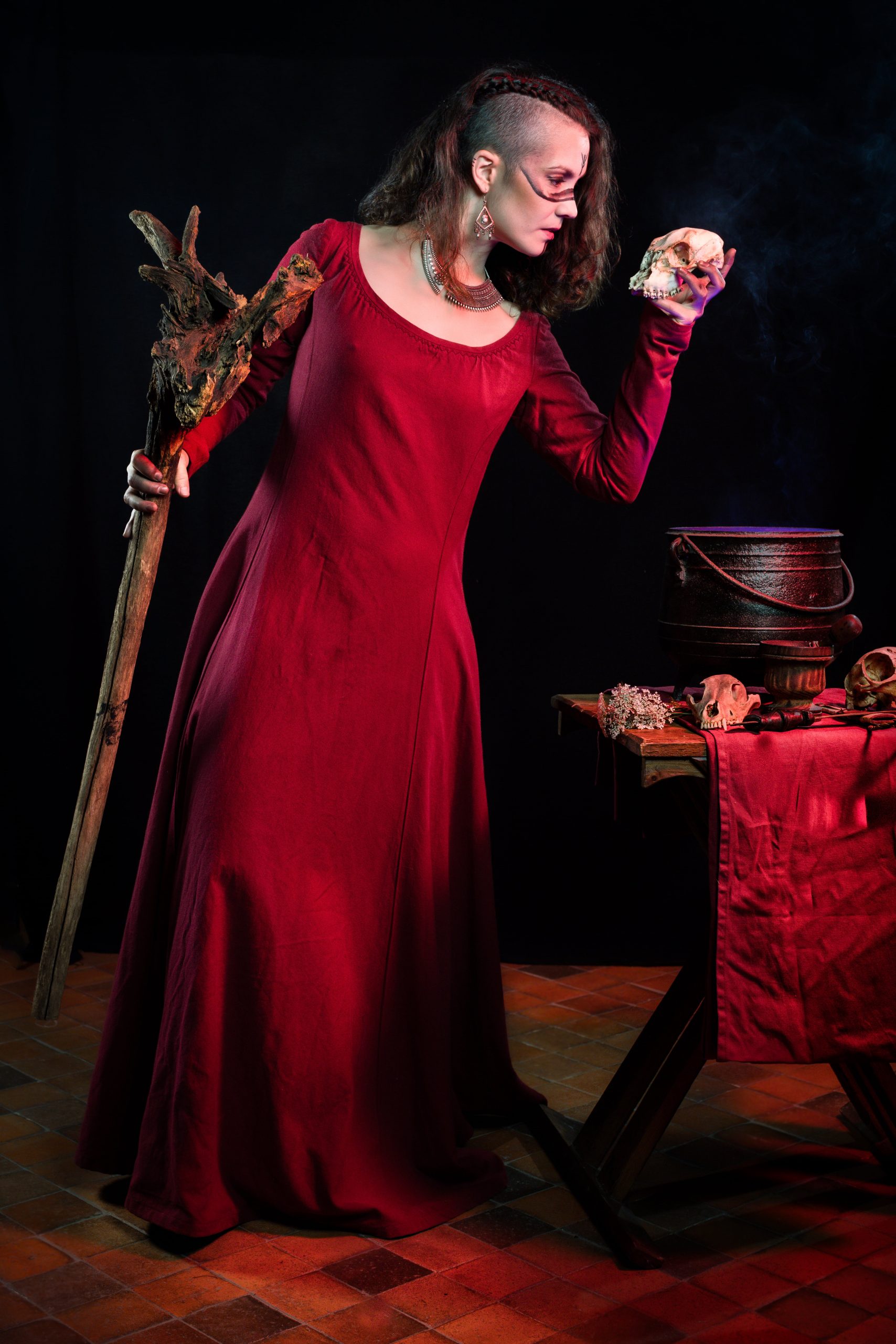 La dernière particularité de La Sorcière Rouge c'est sa versatilité, en fonction des accessoires, coiffure et maquillage que vous lui ajoutez. Avec un maquillage noir, de gros bijoux en bois ou en os, et un chaudron vous serez une sorcière. Avec des tresses serrées, une ceinture tissée, vous serez une déesse viking et avec une coiffure soignée, une couronne et des bijoux vous serez une reine maudite.