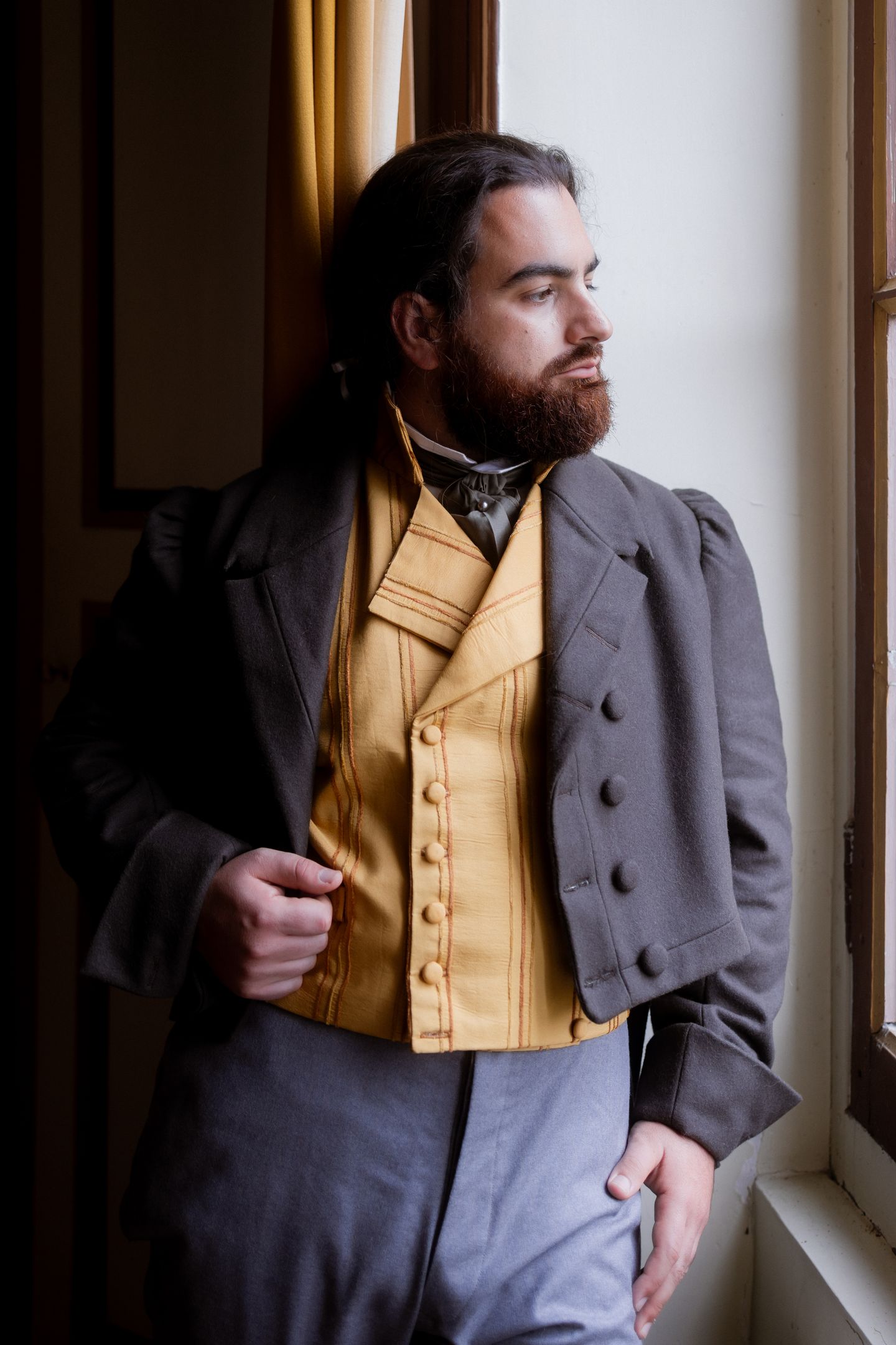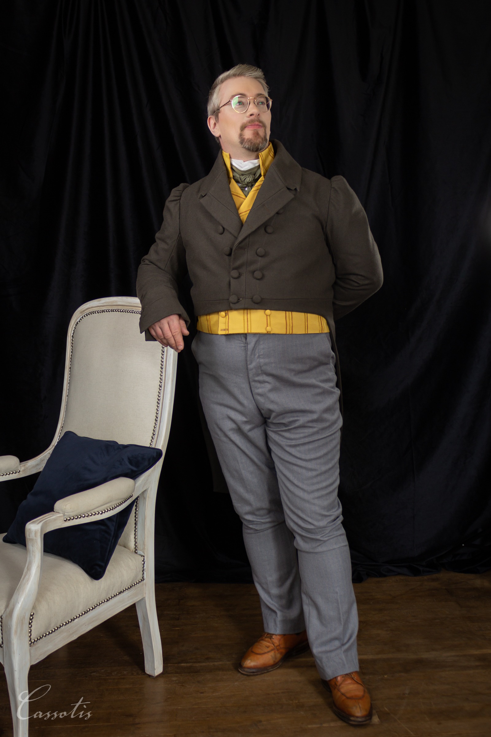 Bingley est très similaire aux costumes Anthony et à Darcy. Les vestes et gilets ont des coupes qui conviennent pour les années 1810-1820 mais j'ai fait le choix de les compléter avec un pantalon 1830. Ce sont donc des tenues idéales pour celleux qui n'ont pas l'habitude de se costumer et préfèrent ce qui se rapproche de leurs vêtements quotidiens.